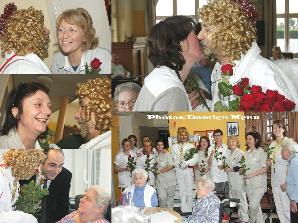 PLOEGSTEERT: En cette journée de la St-Valentin, Cupidon(alias Ludo Goeman) avait décidé de rendre visite cette année aux "Valentine" ainées. Avec son arc en bandoulière et quelques flêches stockées dans le carquois notre homme au grand coeur a offert une jolie rose à chaque pensionnaire du home le "Sacré Coeur", ce midi juste avant le moment du repas. Il va sans dire que la surprise fut grande et que le geste a fait grandement plaisir à ces Dames , dont quelques-unes montèrent même au septième ciel !